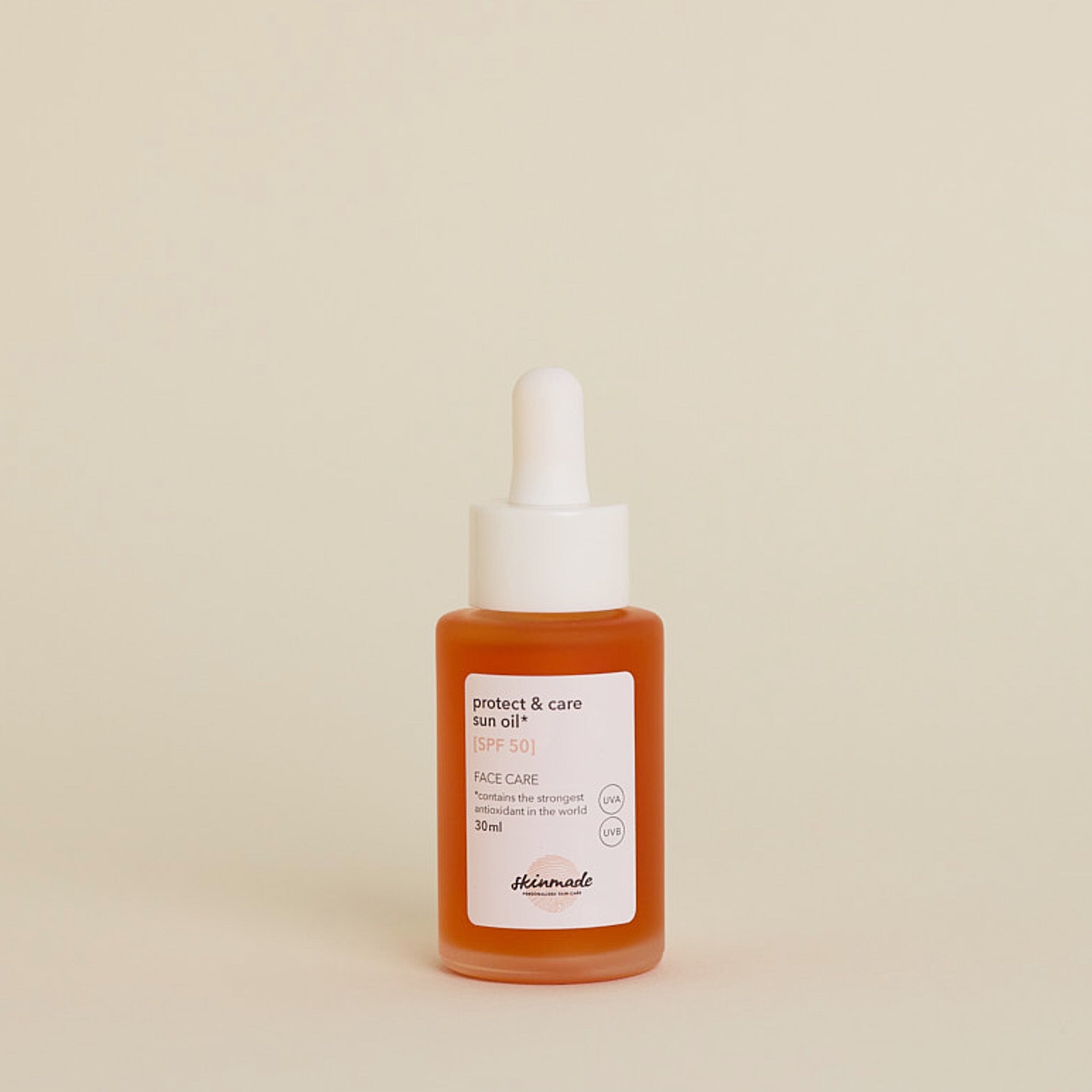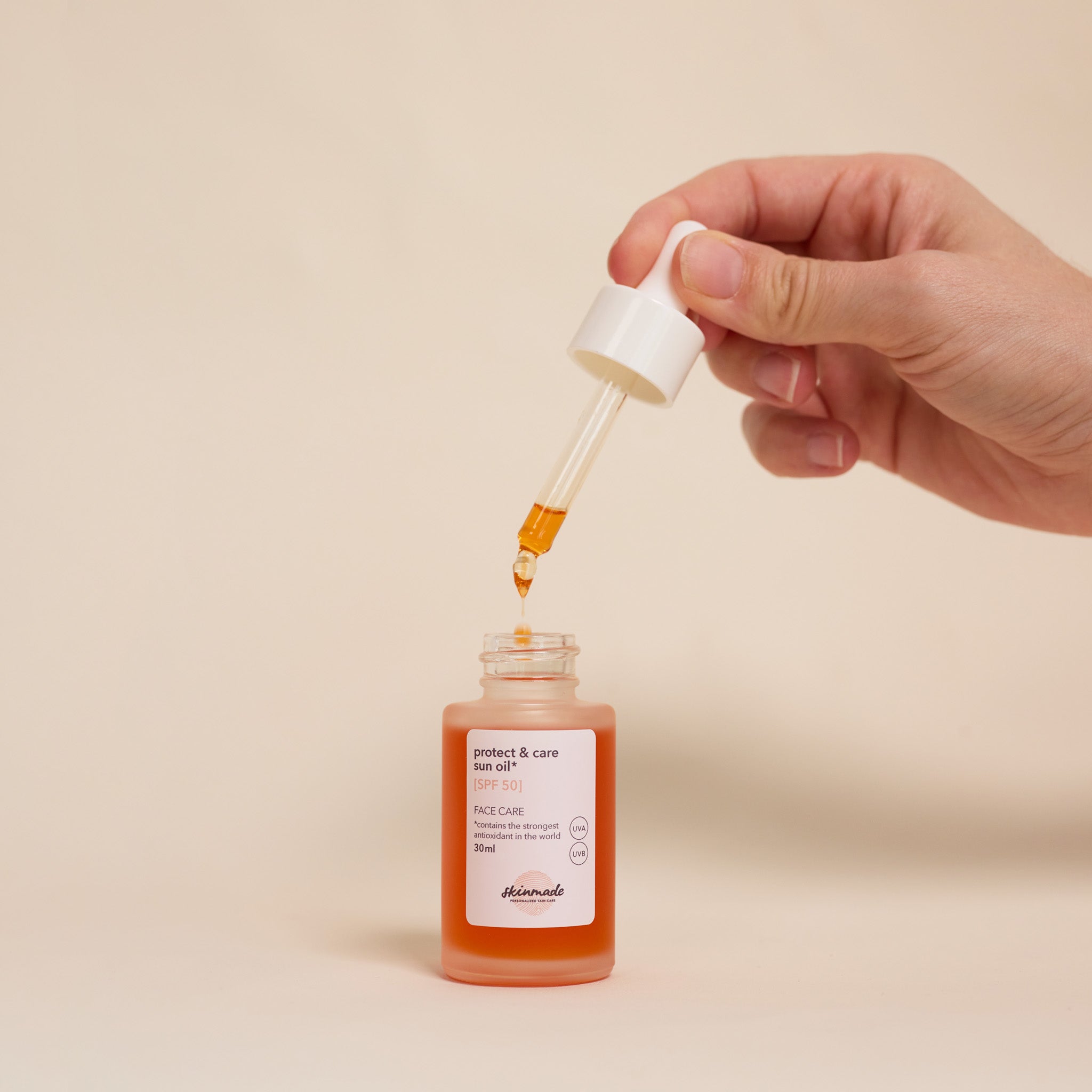 reinöl, das die basis des sonnenschutzes bildet. die mehrkettigen fettsäuren sind hochverträglich und nicht komedogen, bedeutet: sie führen nicht zu unreinheiten.